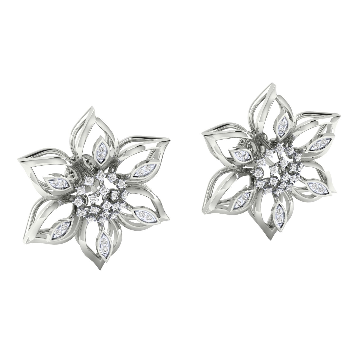 Contemporary Luxury Floral Gold Diamond Earrings